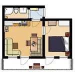 Oda içi imkanları arasında küçük mutfak, uydu kanallı düz ekran televizyon, hızlı internet yer almaktadır. Banyoda banyo havluları, havlular ve yer seviyesinde duş, lavabo bulunmaktadır.